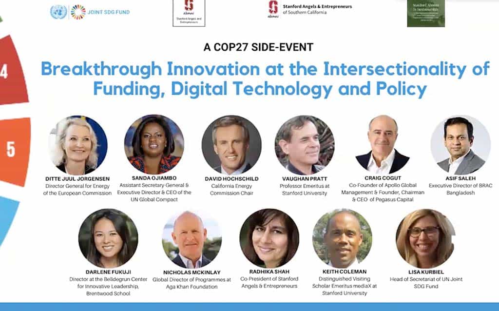 Hosted by The Joint SDG Fund Breakthrough Alliance, Stanford Angels & Entrepreneurs, Stanford Angels & Entrepreneurs of Southern California and Stanford Alumni For Sustainability, this event will showcase how the United Nations development system is innovating through collaboration to create joint programs and initiatives, including partnerships with the private sector, that can create greater leverage to finance the SDGs, in specific geographic areas of themes.